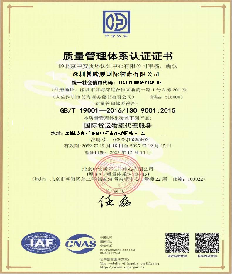 深圳市易腾顺国际物流有限公司是经国家外经贸部(现商务部)批准成立的一级国际货运代理企业,同时也是JCTRANS的Premium物流服务商。主营上海,宁波,青岛,深圳,广州和珠三角到中东,印巴,红海,欧地,东南亚的海运业务,优势船EMC/OOCL/HMM/COSCO/MSC/MSK等,秉持“信誉为本,服务取胜”的企业宗旨,并以提供“准确、迅捷、高效、节省”服务为最终目标,能够为客户提供最优惠的价格,和最优质的服务,并且专业的工作流程和认真的服务准则是我们与客户紧密连接的核心竞争力。在深圳蛇口港和广州南沙港拥有自己的协议堆场,车队和报关行,代理订舱配载,报关报检,产装送货,熏蒸仓储,单证缮制相关服务,所有的一切只为支持我们的客户满意的微笑和认可。