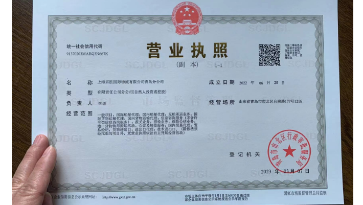 上海宗胜国际物流有限公司青岛分公司